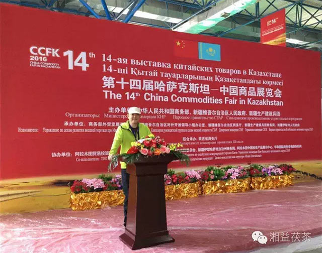 第十四屆哈薩克斯坦——中國商品展覽會于2016年5月20日在哈薩克斯坦阿拉木圖市隆重開幕。為積極落實中央關于加快推進絲綢之路經濟帶建設,加大企業開拓中亞新興茶葉市場,提升湘益茯茶在中亞各國的品牌優勢,新疆新益茶業有限責任公司做為兵團代表之一向國外客商及消費者展示了湘益牌系列茯磚茶產品并受到一致好評。