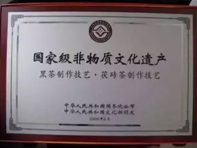 2008年,茯磚茶制作技藝作為重要的歷史文化遺產,被列入國家級非物質文化遺產保護名錄,益陽茶廠有限公司為國家非物質文化遺產茯磚茶制作技藝唯一傳承保護單位。2018年,茯磚茶制作技藝國家級代表性傳承人的桂冠又落在了公司副總經理劉杏益的身上,這充分說明了,公司在茯磚茶制作技藝的傳承與保護方面所做的努力與貢獻得到了高度認可。