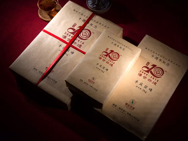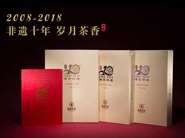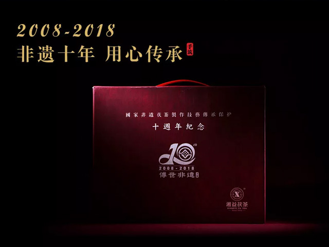 為隆重紀念茯磚茶制作技藝列入國家非物質(zhì)文化遺產(chǎn)保護名錄十周年,作為此制作技藝唯一傳承保護單位,益陽茶廠有限公司現(xiàn)特別推出【傳世非遺】紀念茶組合限量收藏禮盒套裝。