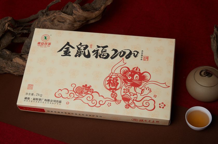 包裝風格依舊延續以往生肖茶傳統剪紙風格,以中國紅為基調,大氣簡潔又不失喜慶吉祥的年味,滿載湘益誠摯的新年祝福。外盒采用“鼠+福”的視覺形象,寓意“金鼠送福”、“多子多福”。靈敏討喜的生肖鼠詼諧生趣,靈動鮮活,極富中國傳統風俗趣味和文化內涵,為大家帶來鼠來運寶、大吉大利的美好祝福。此次包裝還對外盒材質進行了升級,更加堅固硬挺,希望為茶友帶去更好的體驗。