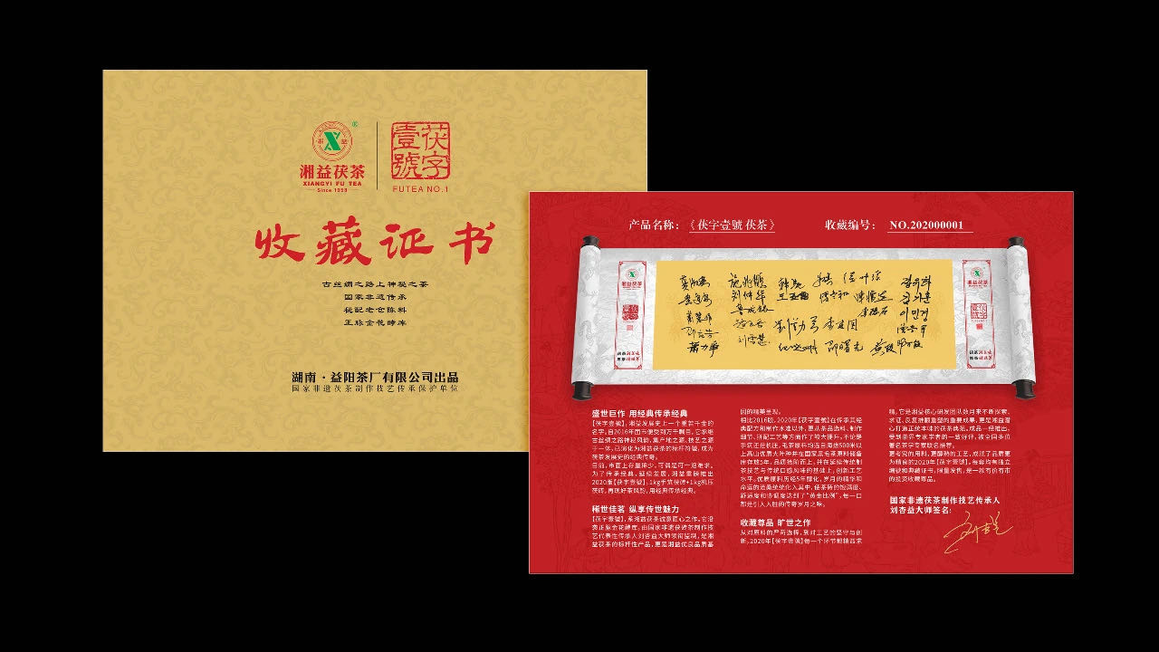 2020年【茯字壹號】傳承老配方標準精心調配,沿襲正脈金花酵庫,由國家非遺茯磚茶制作技藝代表性傳承人劉杏益大師領銜監制。它是湘益茯茶的標志性產品,更是湘益優良品質基因的精美呈現。