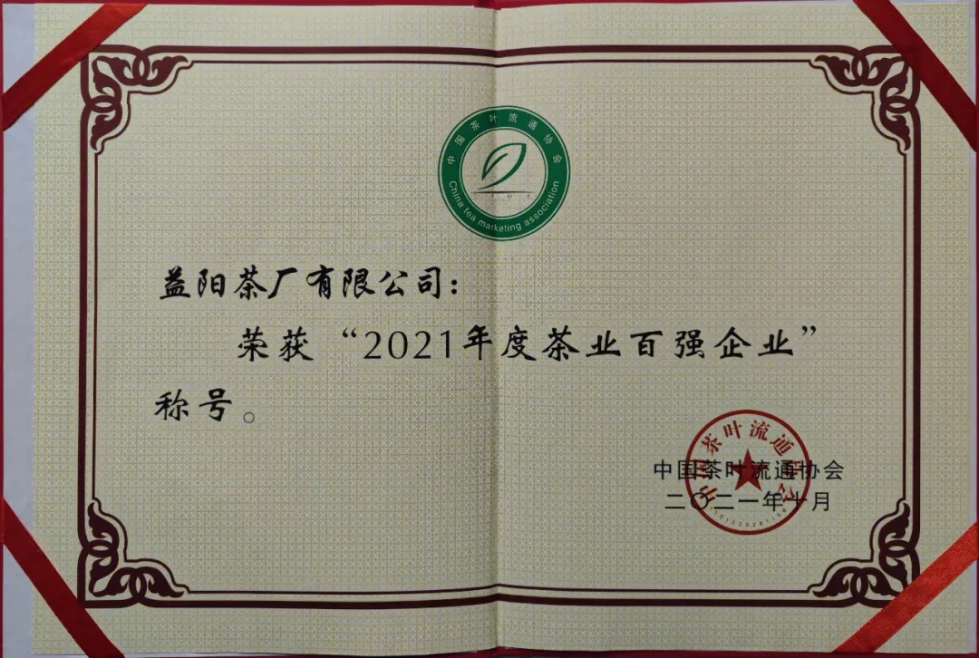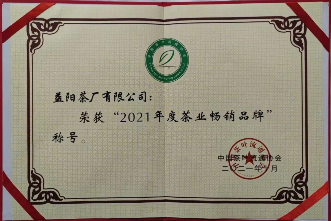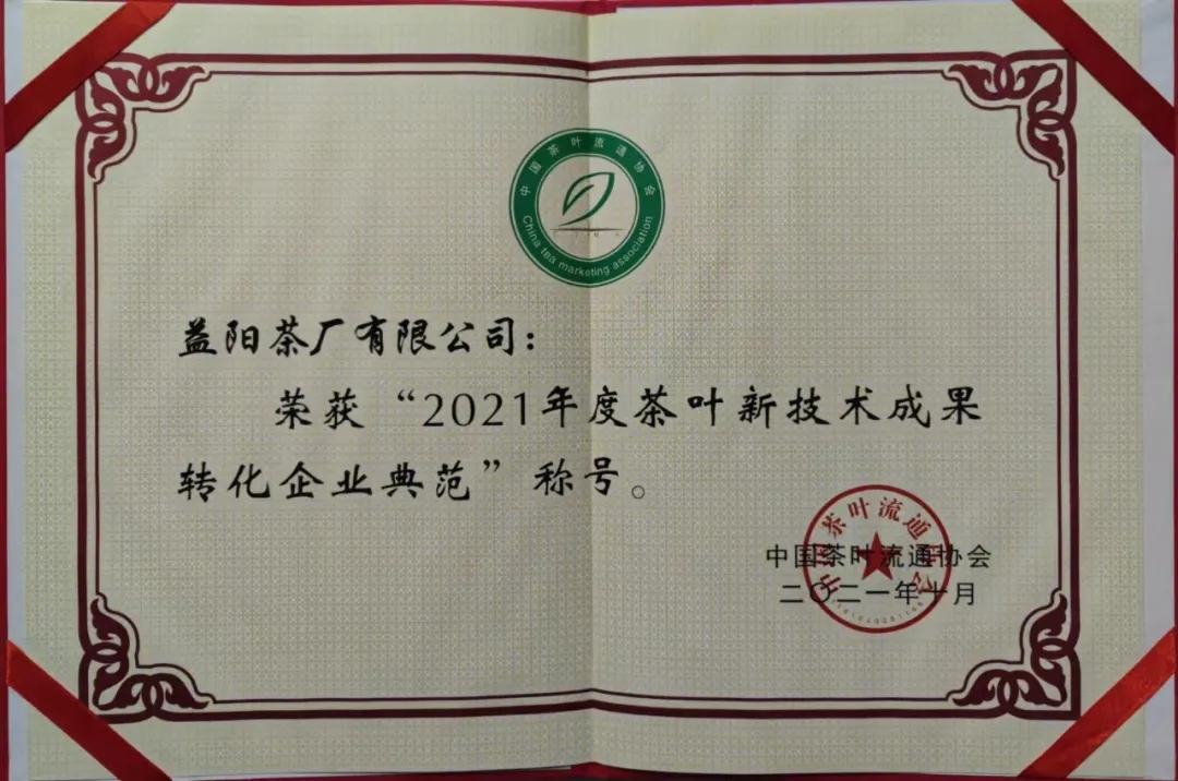 △益陽茶廠有限公司榮獲【2021年度茶業暢銷品牌】△益陽茶廠有限公司榮獲【2021年度茶葉新技術成果轉化企業典范】