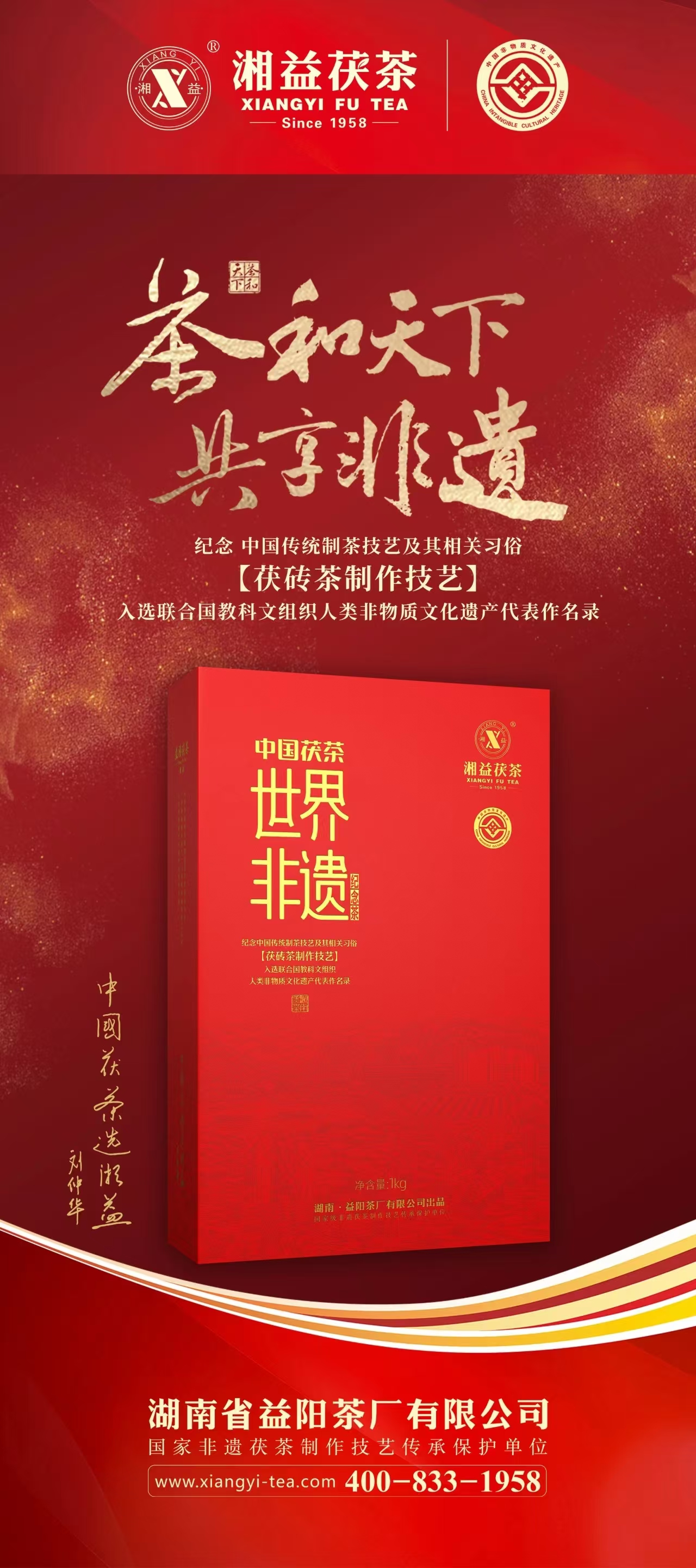 以及制作自己的模板茯磚茶盛產于益陽,以優質黑毛茶為原料,經渥堆、發酵、壓制成型和發花等環節制作而成。磚內產生金花(冠突散囊菌),是一種對人體有益的益生菌,也是茯磚茶品質風味形成的重要生化動力和物質基礎。數百年來,茯磚茶與奶、肉并列,成為西北地區各少數民族的生活必需品,被譽為“中國古絲綢之路上的神秘之茶”和西北各少數民族的“生命之茶”。2008年,黑茶制作技藝(茯磚茶制作技藝)入選第二批國家級非物質文化遺產代表性項目名錄,益陽茶廠有限公司為其傳承保護單位。2018年,該項目傳承人劉杏益被認定為國家級非物質文化遺產代表性項目代表性傳承人。為紀念這一歷史重要時刻,湘益重磅打造?中國茯茶 世界非遺?紀念茶,致敬國之盛事,更好推進非遺文化的守護、傳承與弘揚。