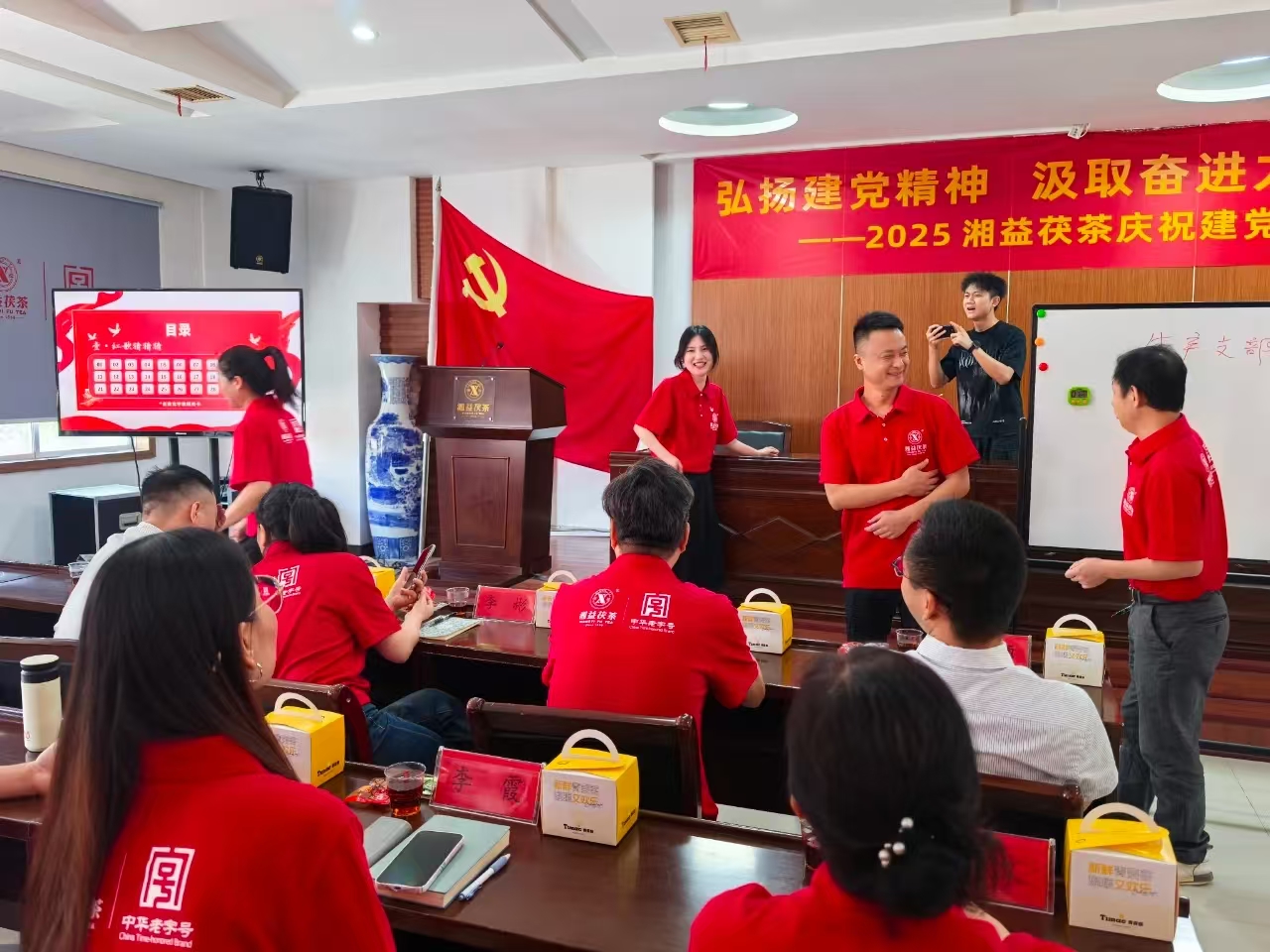 活動尾聲,公司總經理余智勇的講話擲地有聲:"同志們,新時代的號角已經吹響。讓我們以逢山開路、遇水搭橋的闖勁,以越是艱險越向前的拼勁,共同書寫湘益茯茶新的輝煌篇章!"這番話語猶如戰鼓催征,激勵著每一位黨員以更加昂揚的姿態投身企業發展。