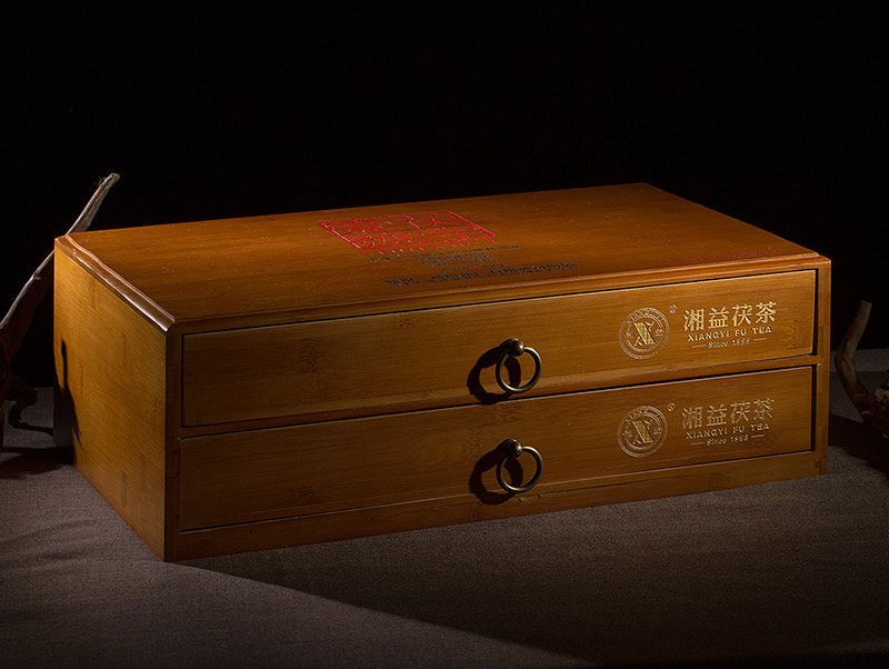 每件涵蓋機制茯磚茶和手筑茯磚茶2種茯磚茶形態(tài),每片規(guī)格為2kg ,設計匠心獨運,采用特制的抽屜式竹盒包裝,暨是產品包裝也可做茶葉樣品柜,每套竹盒都刻有獨立編號,限量發(fā)售。
